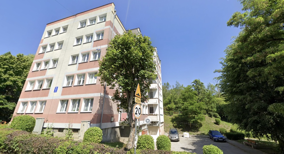 Квартира розташована на 3-му поверсі відремонтованого 4-поверхового будинку та має південну орієнтацію з видом на дерева та панораму східного Гданська.