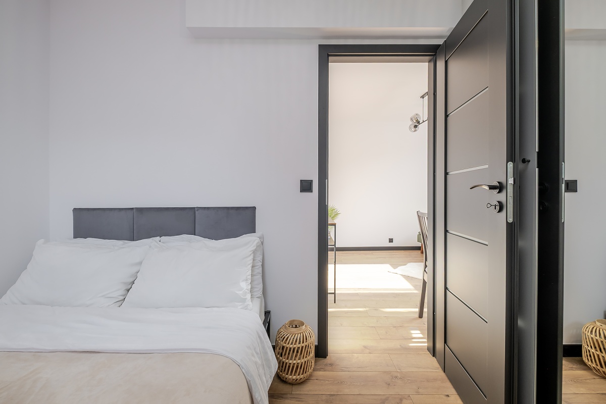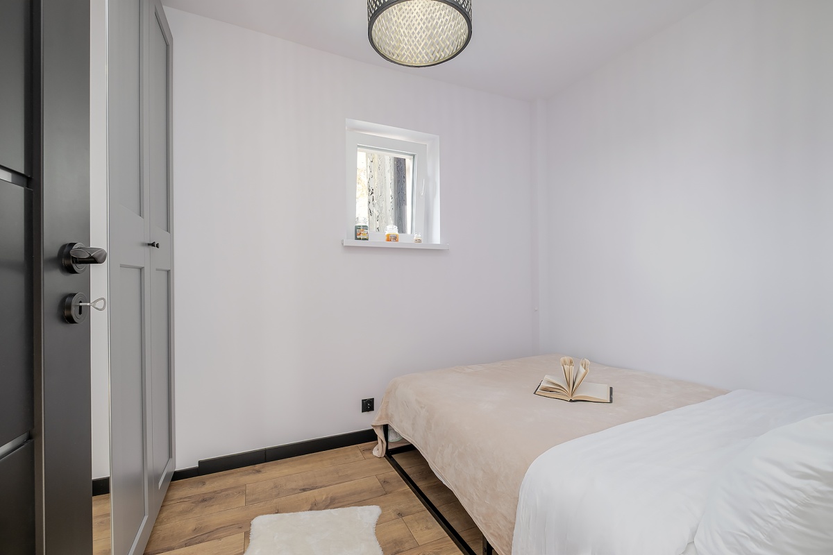 – oddzielnej sypialni z dużym łóżkiem i 2 metrową szafą