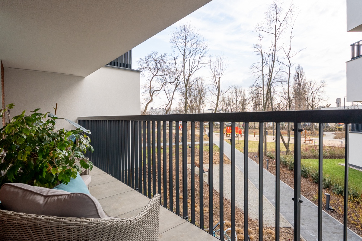 Lokal składa się z trzech pokoi: jasnego salonu z aneksem kuchennym, dwóch komfortowych sypialni, łazienki oraz dodatkowego pomieszczenia gospodarczego z funkcją pralni. Dużym atutem nieruchomości są aż trzy balkony, które zapewniają dodatkową przestrzeń do relaksu i doskonałe doświetlenie wnętrz.