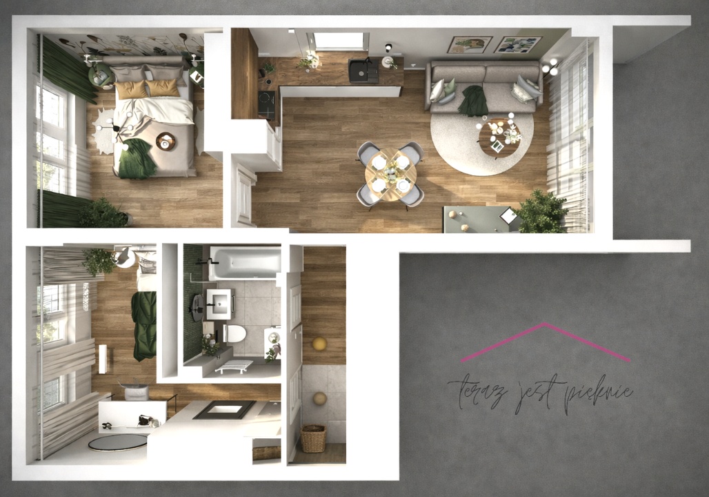 Mieszkanie jest w trakcie remontu generalnego. Remont jest wykonywany na podstawie załączonych wizualizacji.