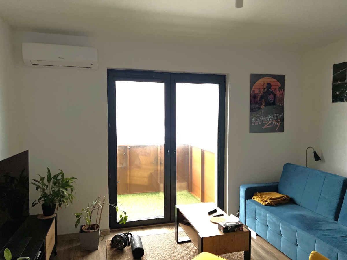 – Pokój dzienny: rozkładana kanapa, klimatyzacja, szafka RTV, panele na podłodze