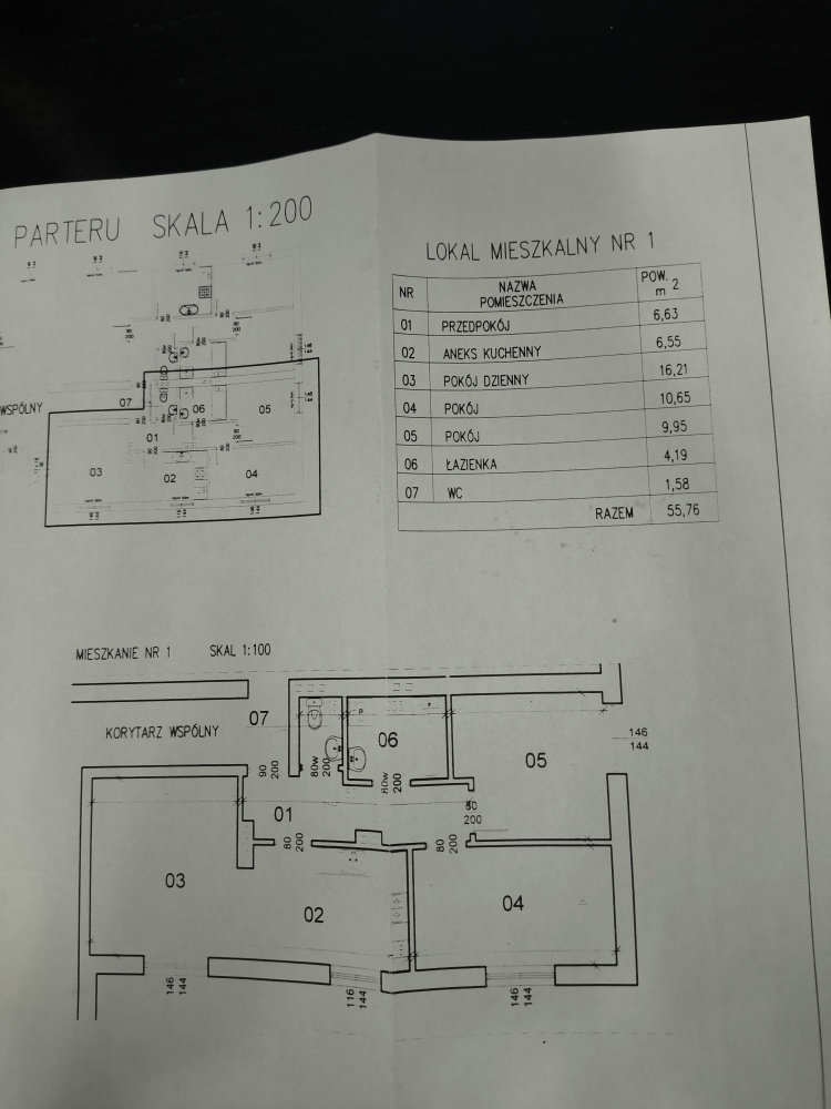 -Powierzchnia mieszkania: 55,76 m2 + 11 m2 piwnica,