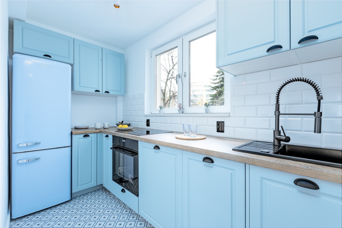 Sprzedam bezpośrednio mieszkanie o powierzchni 47,8 m przy ul. Topiel 19 na warszawskim Powiślu. Lokal mieści się na pierwszym piętrze 4-piętrowego bloczku z lat 60′, składa się z 3 pokoi (dwie oddzielne sypialnie i przejściowy salon), widnej, oddzielnej kuchni, łazienki z WC i przedpokoju. Mieszkanie świeżo po generalnym remoncie – zostało zrobione praktycznie wszystko – nowa instalacja elektryczna wraz z oświetleniem, gładź na ścianach, zabudowy, podłogi, parapety z konglomeratu, wycyklinowany i dopieszczony parkiet dębowy, drzwi wewnętrzne i zewnętrzne, w łazience glazura, terakota, wyposażenie sanitarne, zrobiony prysznic typu walk-in. Nowa zabudowa kuchenna, granitowy zlew i sprzęty AGD – pralka, zmywarka, piekarnik, płyta indukcyjna (zdemontowana instalacja gazowa), lodówka. W oknach PCV wymienione szyby, uszczelki, klamki. Wszystko nowe, od listew przypodłogowych, po słuchawkę domofonu. Lokum widne (trójstronne) i ciche.