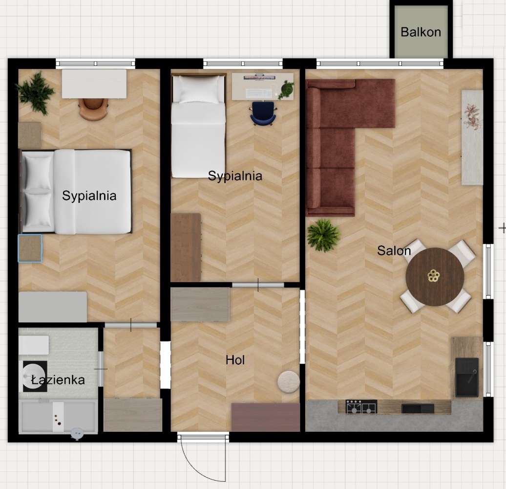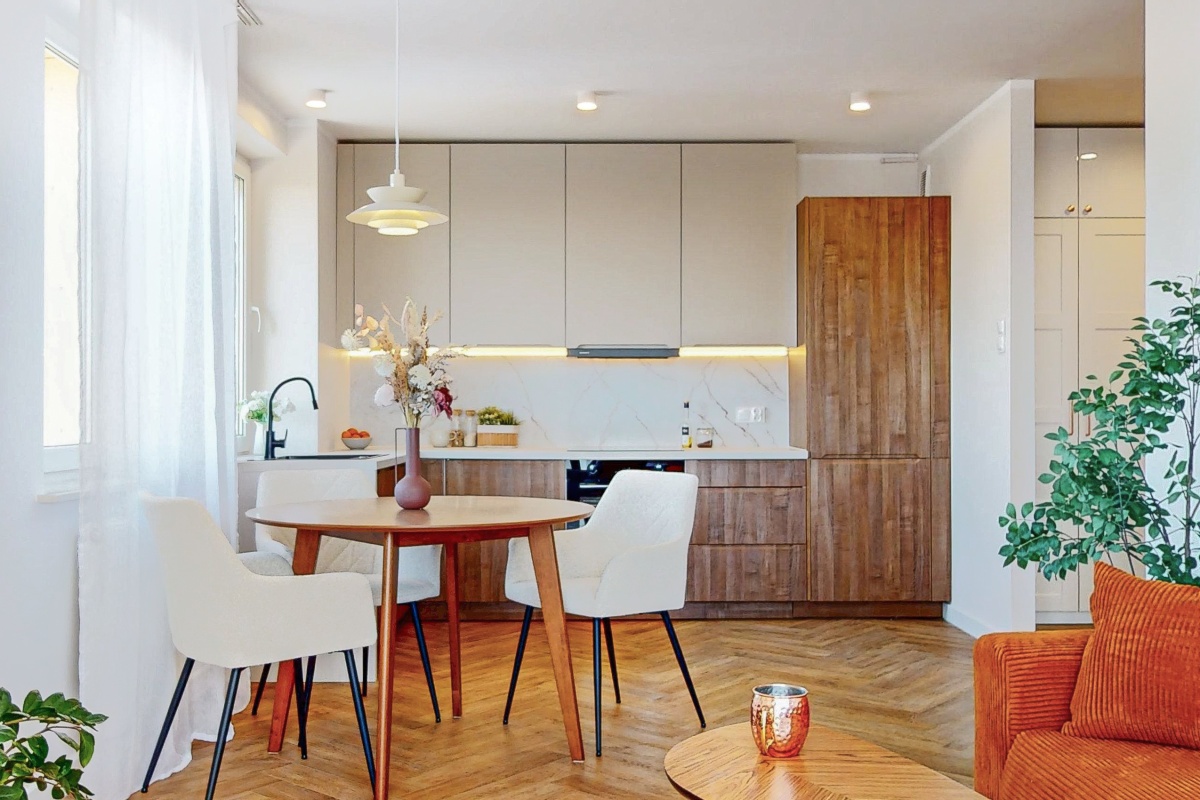 -przestrzenny salon (22m2) z dużym aneksem kuchennym – istnieje opcja oddzielenia kuchni od salonu, w pomieszczeniu aż 3 okna