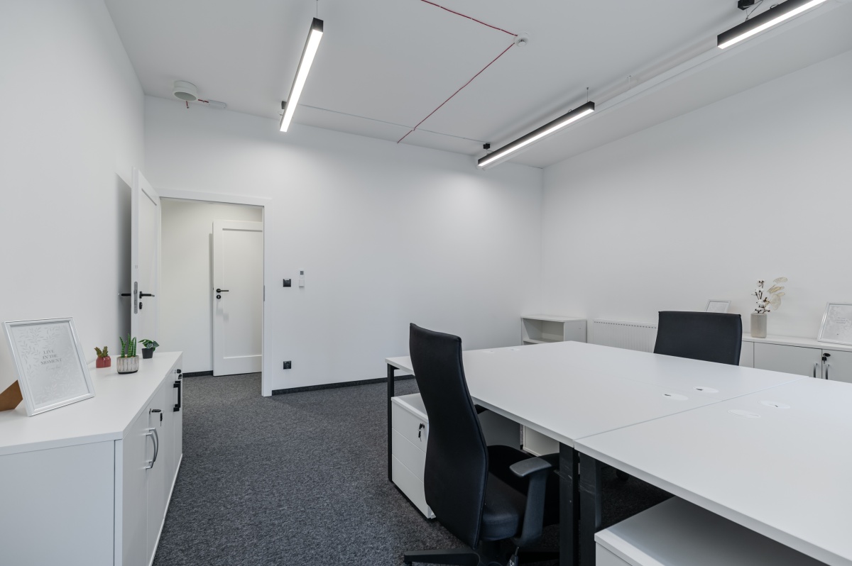Zdjęcia przedstawiają standard wykończenia oraz wyposażenia powierzchni biurowej w budynku.