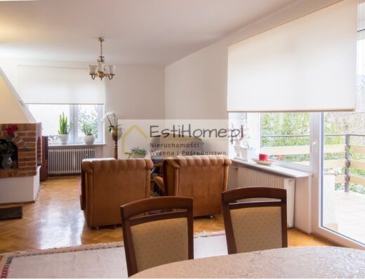Działka o powierzchni 1185m jest zagospodarowana pięknym ogrodem, Od strony drogi urządzony został oświetlony i monitorowany parking na 14 miejsc.