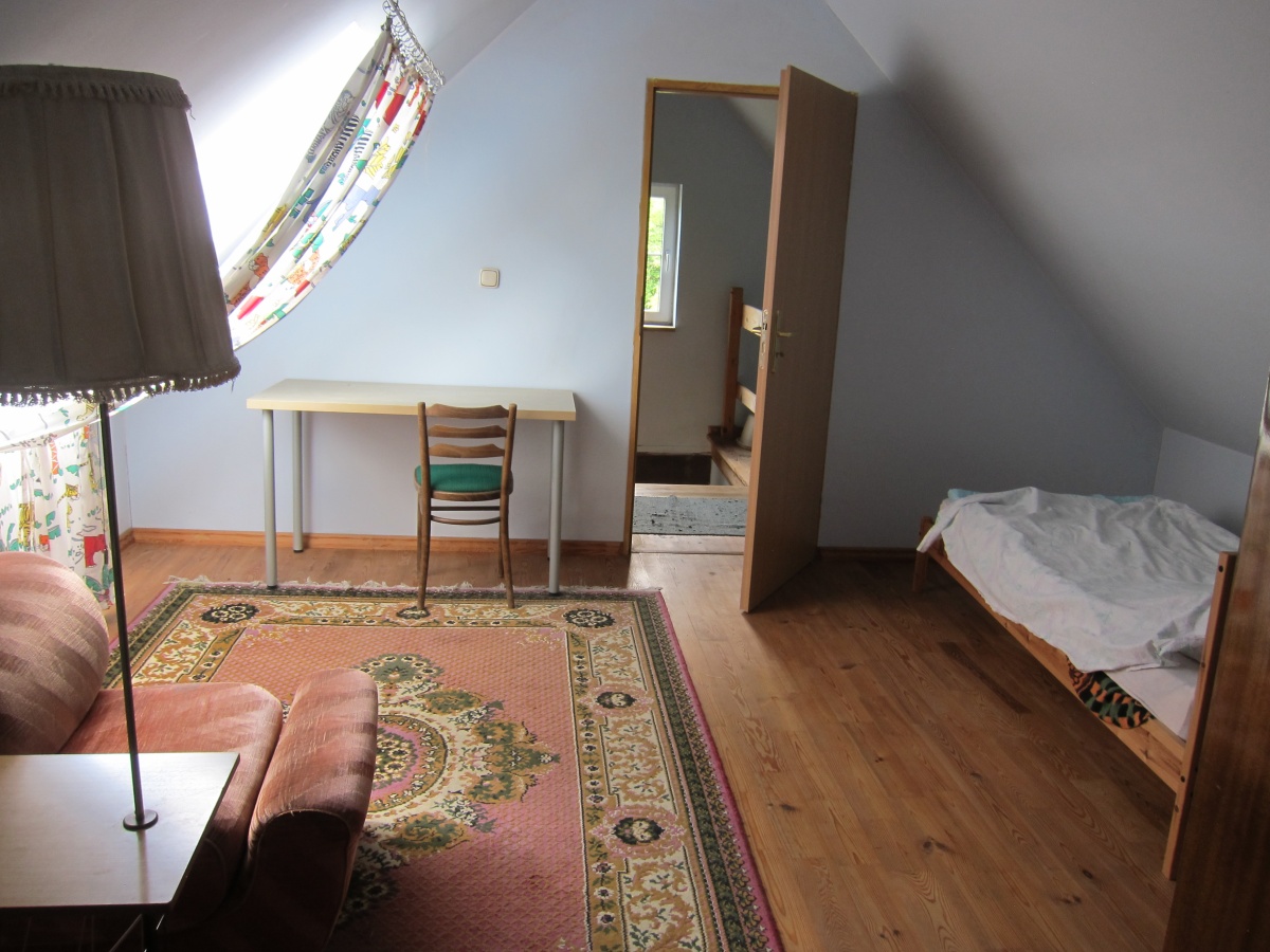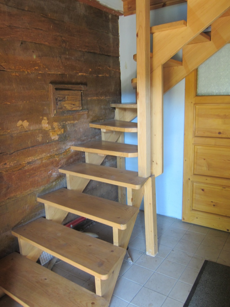 Parter orginalnie zachowana chlopska izba i kuchnia, rozbudowane piętro w poddaszu oraz łazienka w dawnej komorze .