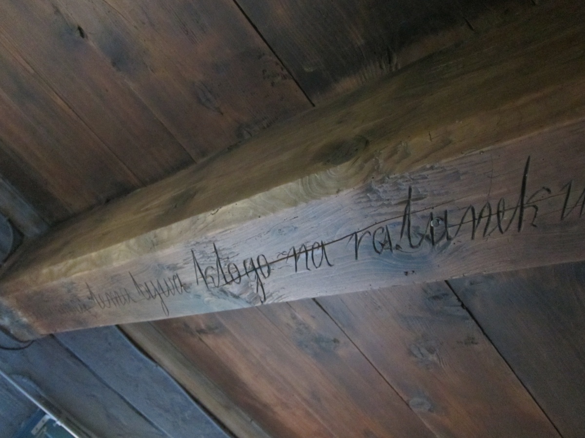 Parter domu oryginalne belki oraz powała z 1879 roku , na podłogach położono na nowo oryginalne stare deski.