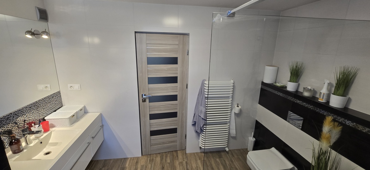 Możliwość wykonania osobnego wejścia przez garaż – idealne przy prowadzeniu działalności bez ingerencji w część mieszkalną.