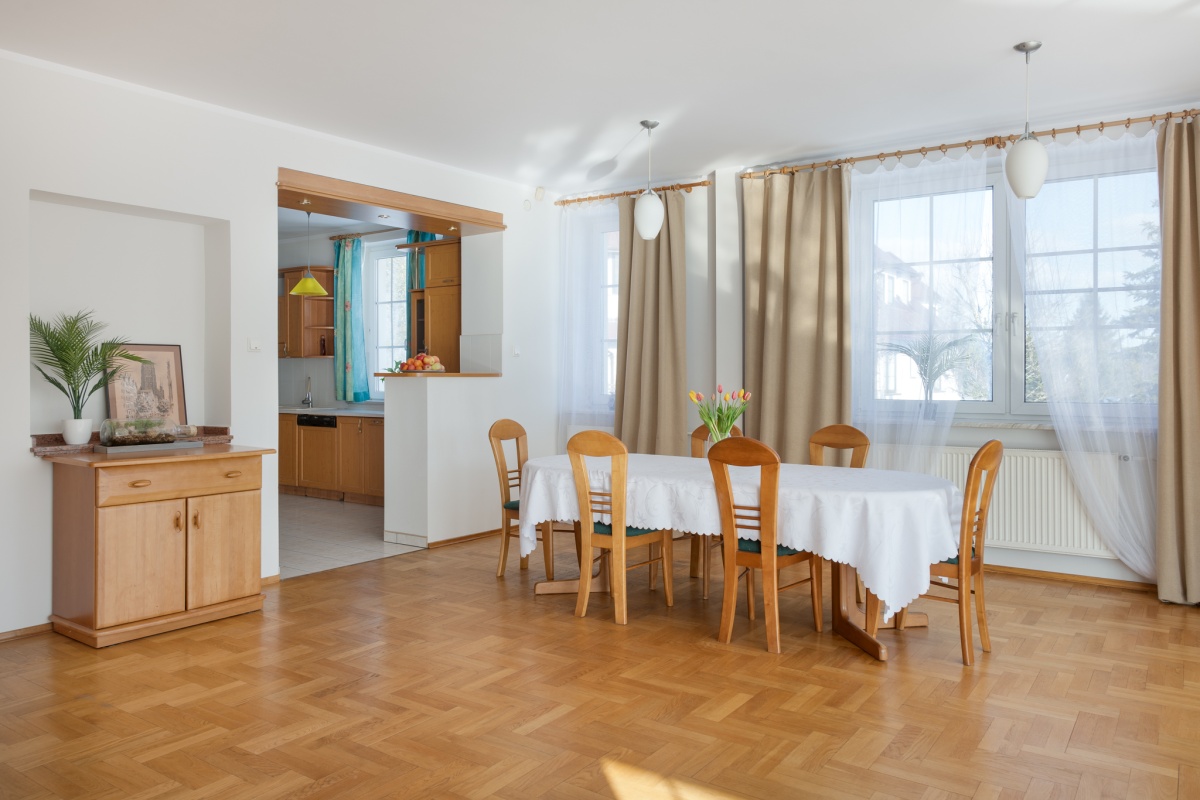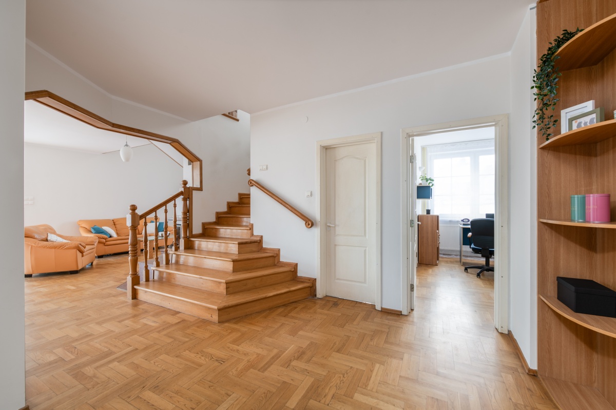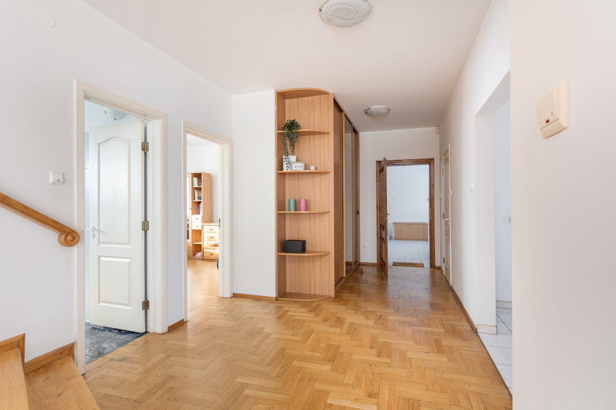 Dom o powierzchni użytkowej 278,3 m², wykonany z wysokiej jakości materiałów budowlanych i wykończony w wysokim standardzie. Podłogi oraz schody wykończone naturalnym drewnem dębowym. Przemyślany układ pomieszczeń gwarantuje komfort i funkcjonalność, a duża działka daje wiele możliwości aranżacyjnych. Dostępny jest także światłowód zapewniający możliwość efektywnej pracy jak i nieograniczonej rozrywki.