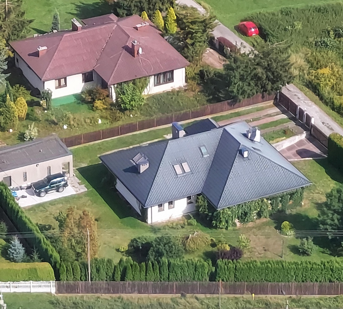 Ponadto, na działce o powierzchni około 17 arów znajduje się wolnostojący duży garaż, a także garaż na jedno auta w przyziemiu. Przy garażu znajduje się płyta betonowa przygotowana pod wiatę, co zwiększa funkcjonalność tego miejsca. Roślinność na działce jest starannie pielęgnowana, co wpływa na estetykę całej przestrzeni oraz wprowadza przyjemny klimat naturalnej zieleni. Budynek ogrzewany jest gazowo, co wpływa na komfort użytkowania oraz efektywność energetyczną nieruchomości. Ogrzewanie podłogowe oraz kaloryfery.