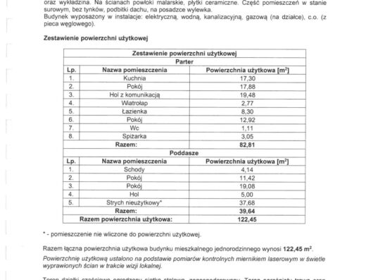 Dom składa się z trzech kondygnacji: podpiwniczenia pod 1/3 domu, mieszkalnego parteru oraz poddasza do ewentualnego zaadaptowania.