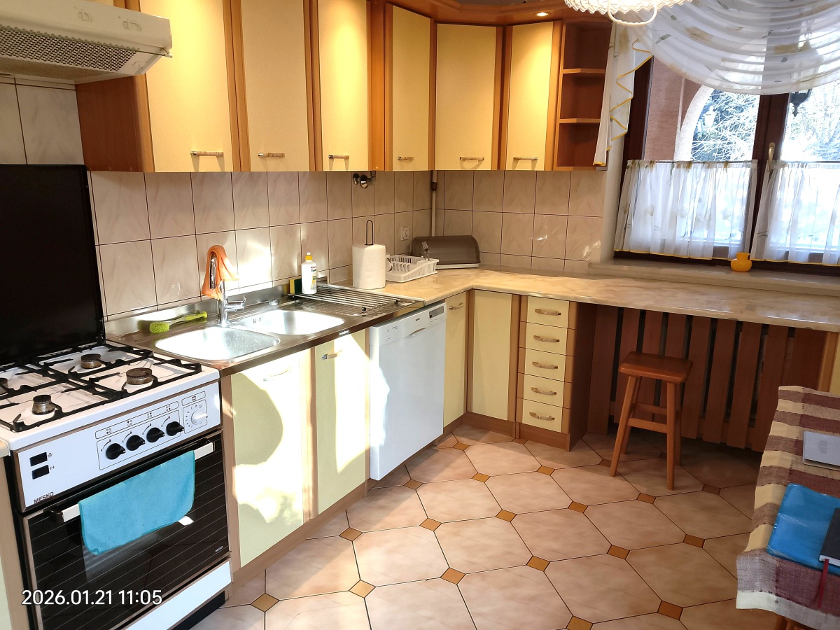 Osiem pokoi usytuowanych na trzech kondygnacjach , parter , piętro i użytkowe poddasze . Dwie niezależne kuchnie parter i piętro , dwie łazienki i trzy oddzielne wc. garderoba i schowek .