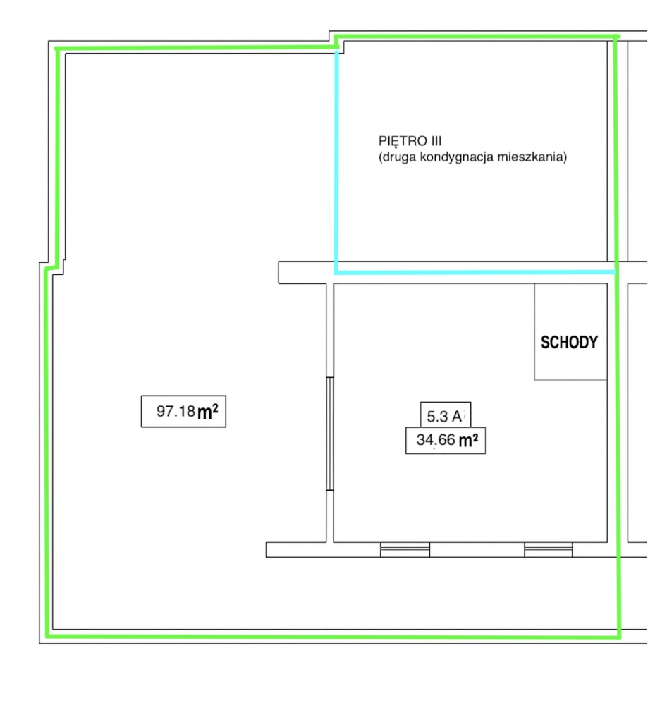 Przestrzeń open space – 35,49 m² (możliwość wydzielenia dwóch pokoi, garderoby)