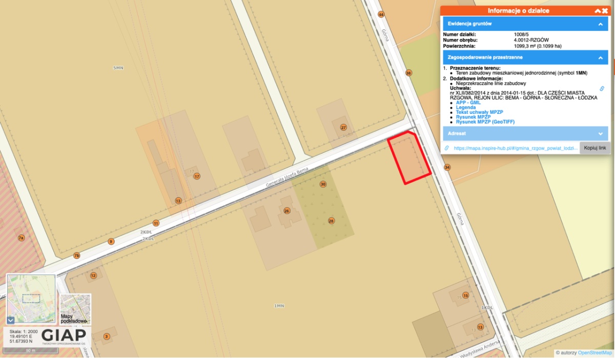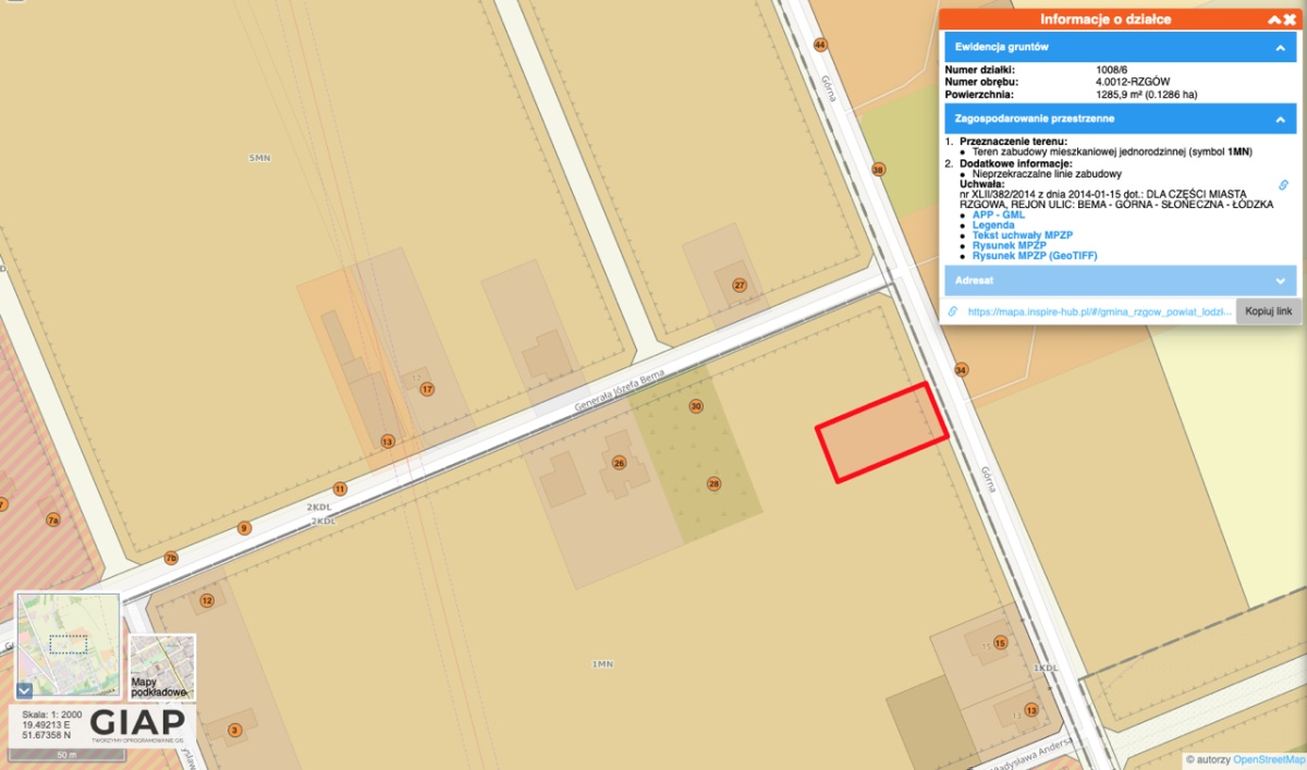 działki zlokalizowane są w Rzgowie przy ul. Bema oraz przy ul.Górnej.