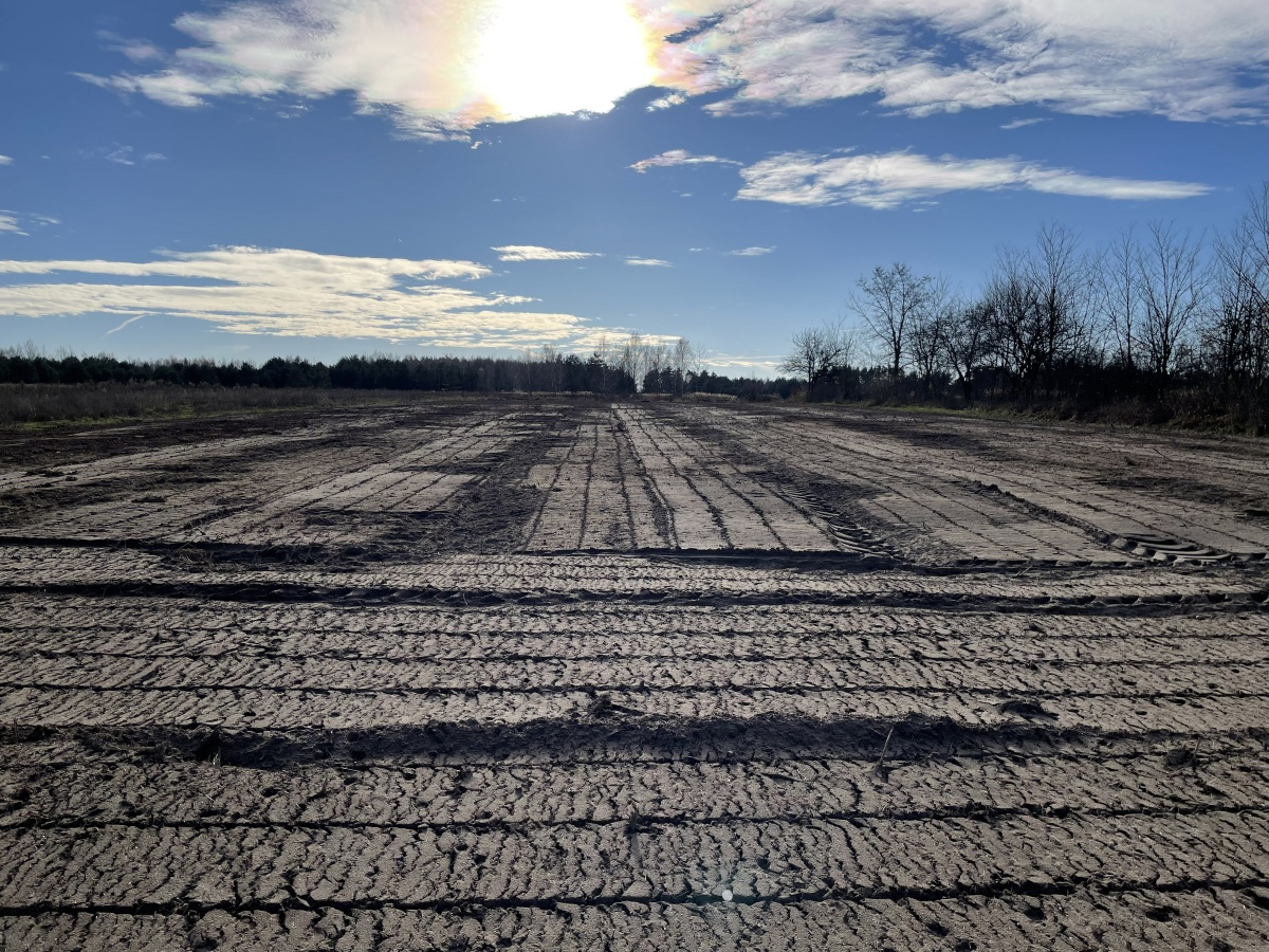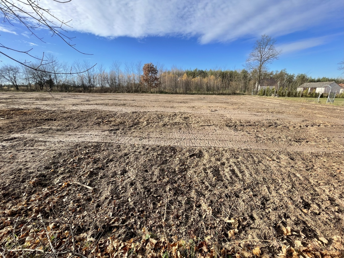 Działka o regularnym, niemal kwadratowym kształcie 33 na 32m i równej powierzchni 1066m2, oczyszczona z zarośli (wgłębnie zmulczowana), ze spulchnioną, wysokiej klasy ekologiczną glebą.