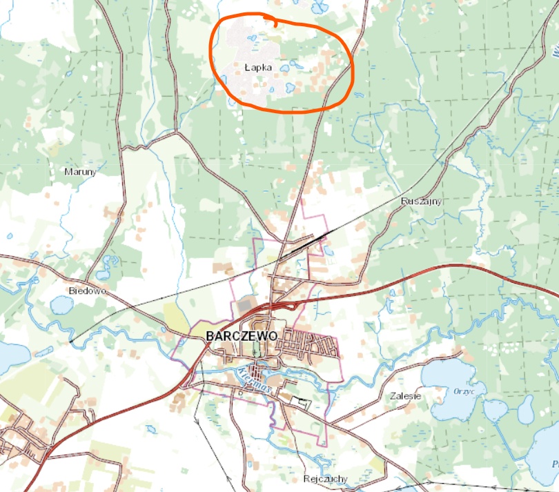Położenie – Łapka – 3,5 km od Barczewo w kierunku na Jeziorany