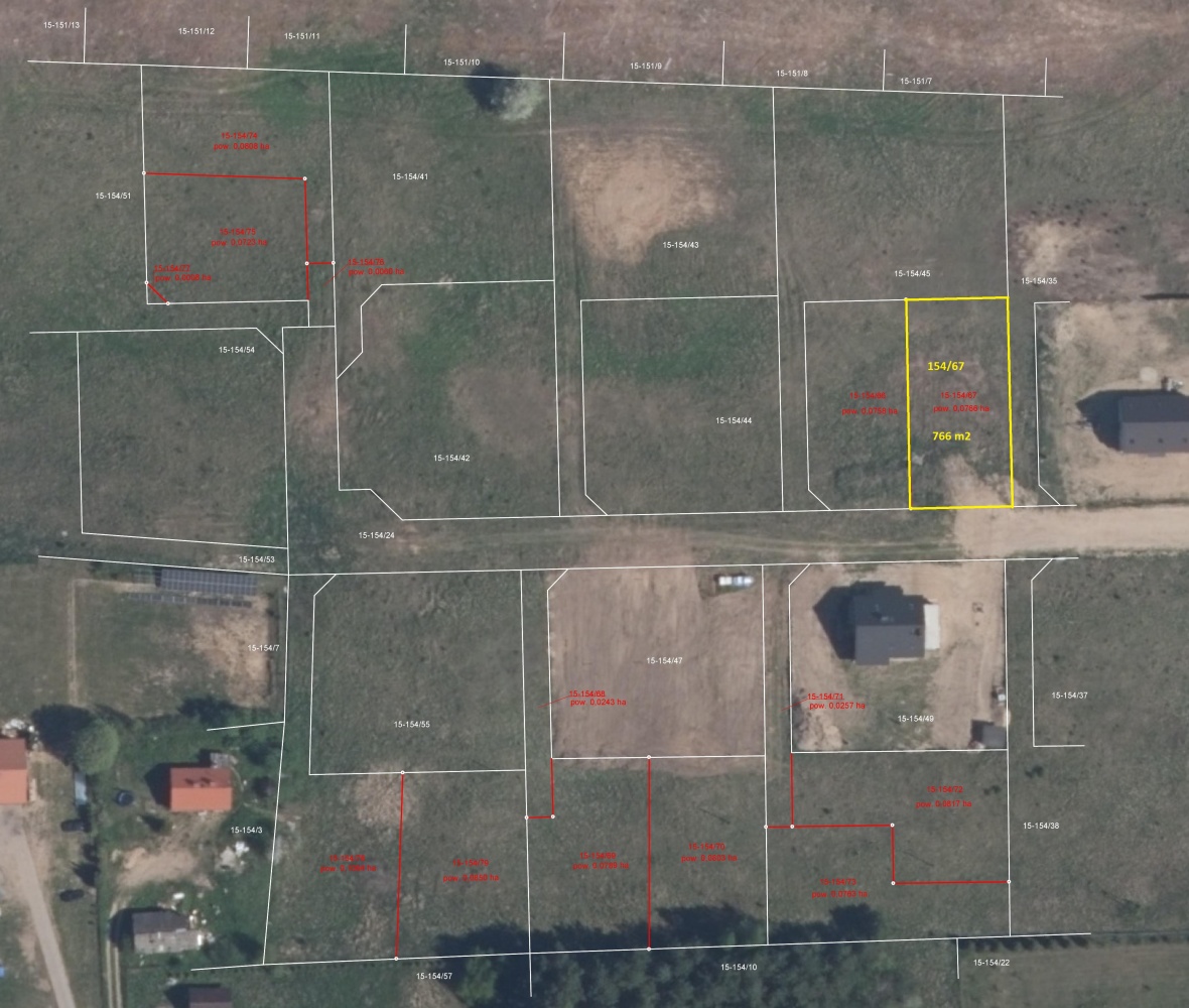 Kształt: działki 154/67 – prostokąt o wymiarach 39 x 21 m