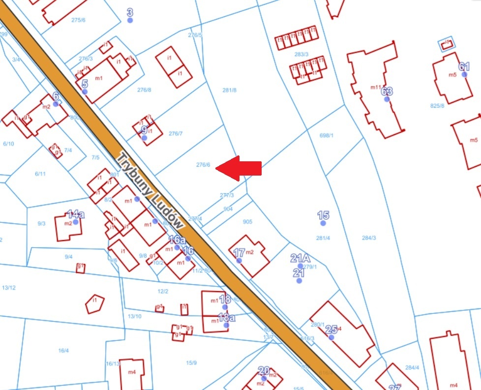 DODATKOWE INFORMACJE: wykonany prąd budowlany, wykonany i odebrany zjazd z drogi publicznej na działkę, dodatkowo udział w bocznej działce drogowej 277/3 i 277/4, zaprojektowana infrastruktura komunikacyjna piesza i kołowa