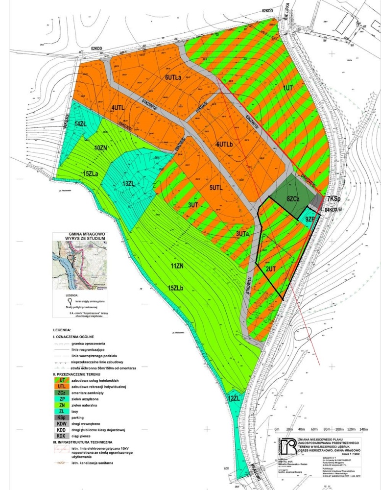 Dla całego terenu opracowany i uchwalony został Miejscowy Plan Zagospodarowania Przestrzennego. Działka oznaczona w planie symbolem 2UT przeznaczona jest w nim na cele usług hotelowych i została już geodezyjnie wydzielona. Oznacza to, że natychmiast po wykonaniu projektu można przystąpić do budowy hotelu, motelu, zajazdu, campingu lub pola namiotowego.