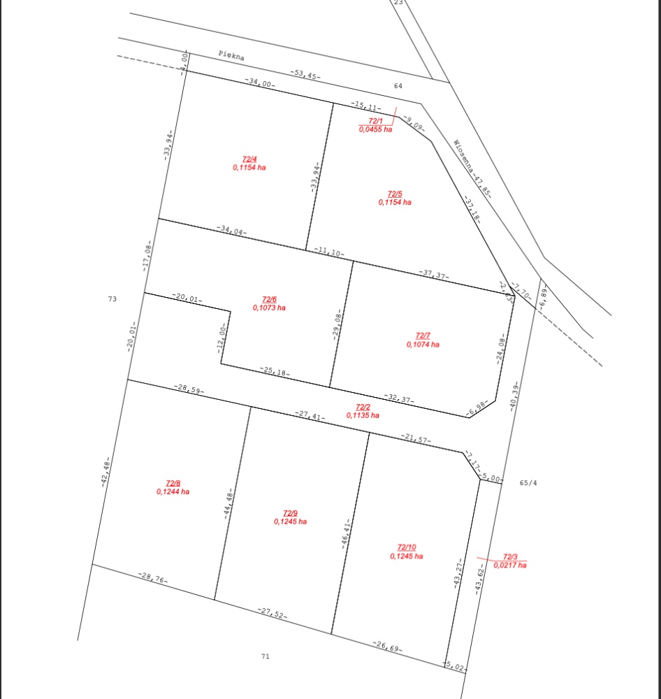 Idealne metraże zarówno pod budowę domu jednorodzinnego, jak i pod inwestycję. Aktualnie działki są w trakcie podziału. Numer działki przed podziałem 72.