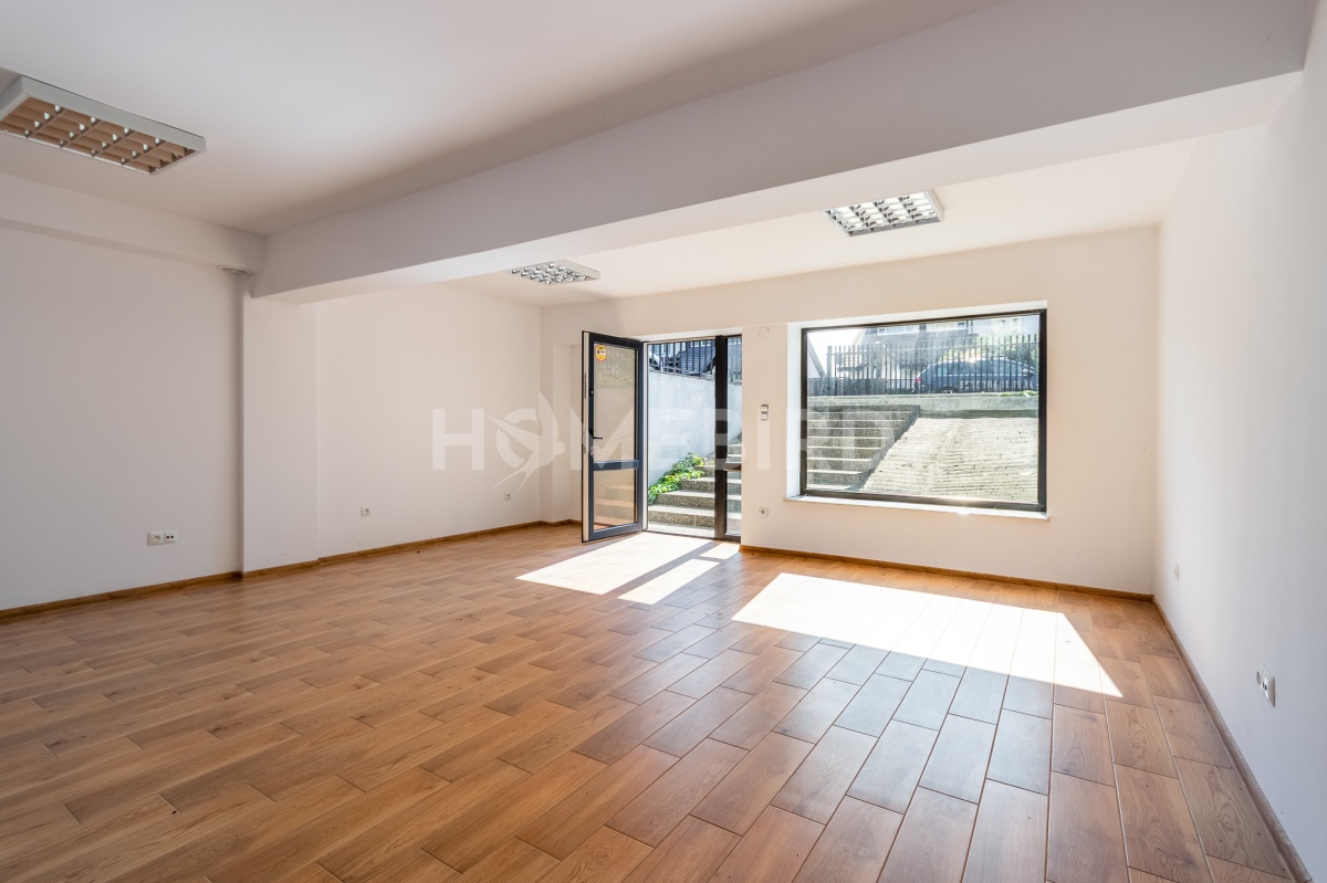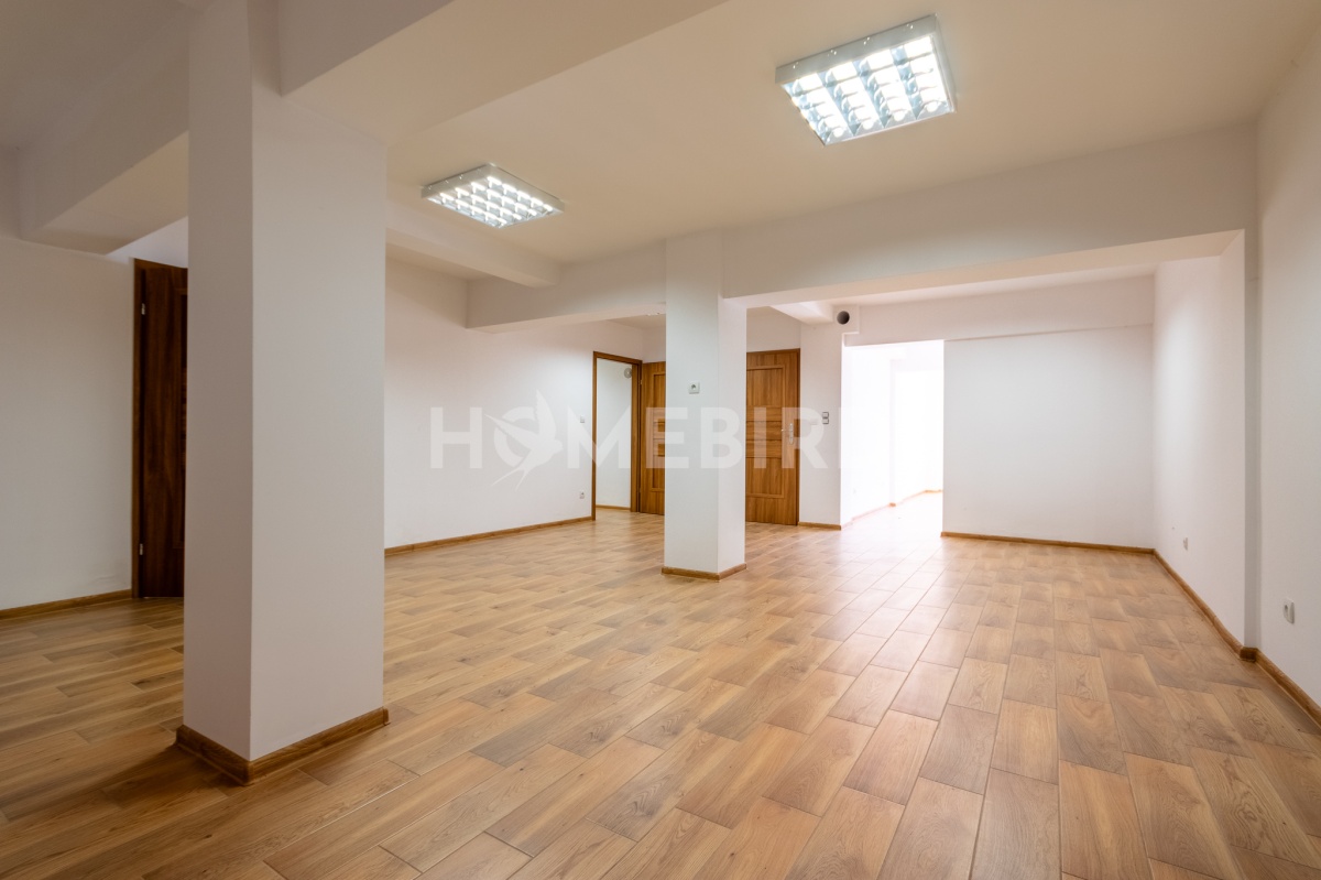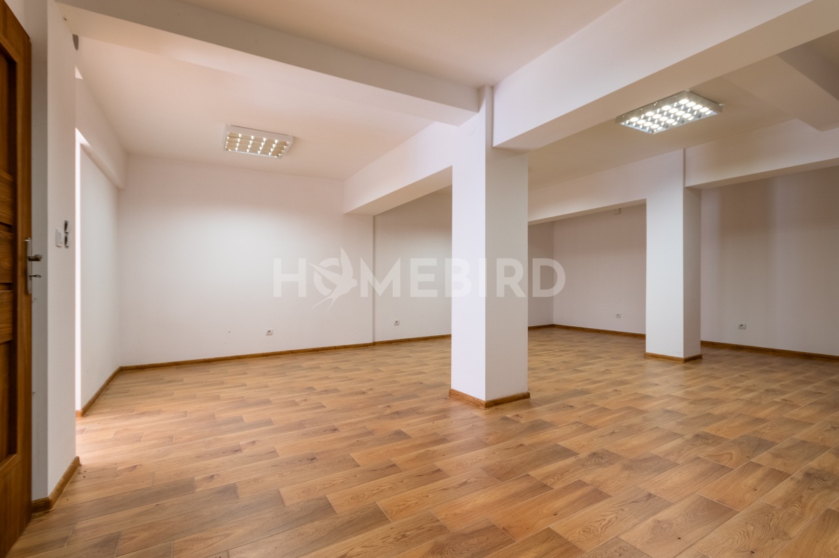 a) pomieszczenia o charakterze usługowo-biurowym, z wejściem, które prowadzi przez przeszklone drzwi (po schodach zewnętrznych, z placu przed budynkiem), o łącznej powierzchni 94,75m2, w pełni wykończone zgodnie z ich przeznaczeniem: