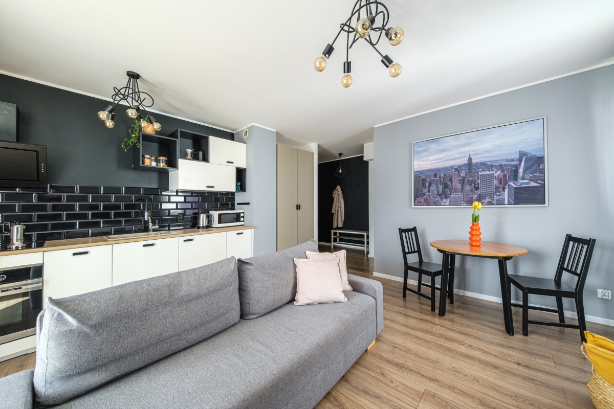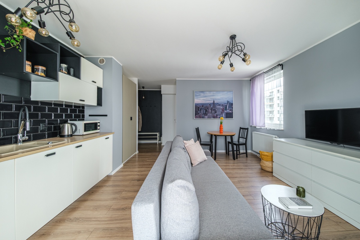 Typ: kawalerka (1 pokój z aneksem kuchennym)