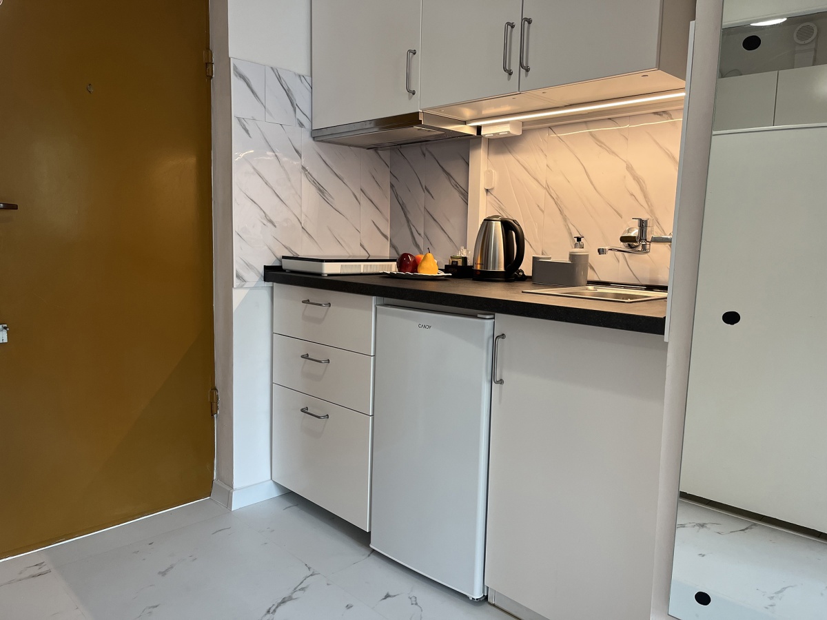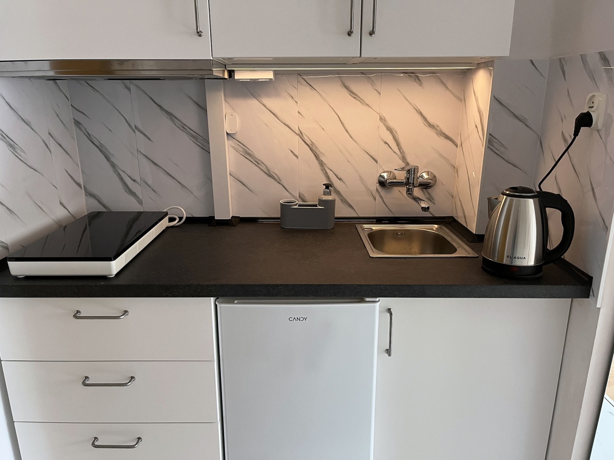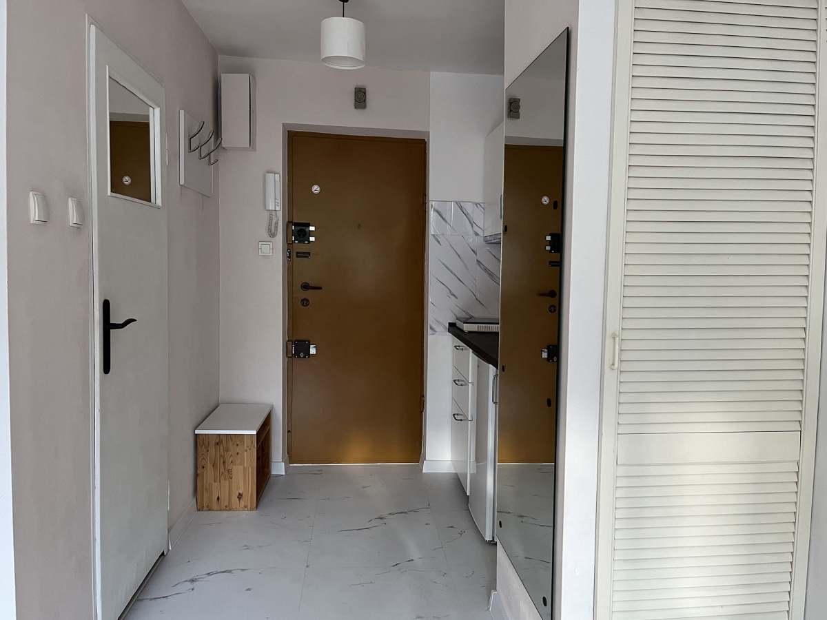• Opis nieruchomości: mieszkanie na pierwszym piętrze, powierzchnia 23 m2. Funkcjonalny układ obejmujący pokój (wydaje się dużo większy), aneks kuchenny w przedpokoju i łazienkę. W pełni wyposażony apartament, gotowy do zamieszkania od zaraz. W kuchni (świeżo po remoncie) jest płyta indukcyjna przestawna (można odstawić w celu uzyskania większej powierzchni blatu), lodówka, nowe szafki i okap. W łazience – pralka, prysznic, zamontowana zwijana suszarka. W pokoju znajduje się rozkładana kanapa, stoliki, lekki regał, szafa wnękowa i telewizor. Do mieszkania przynależy komórka lokatorska w piwnicy