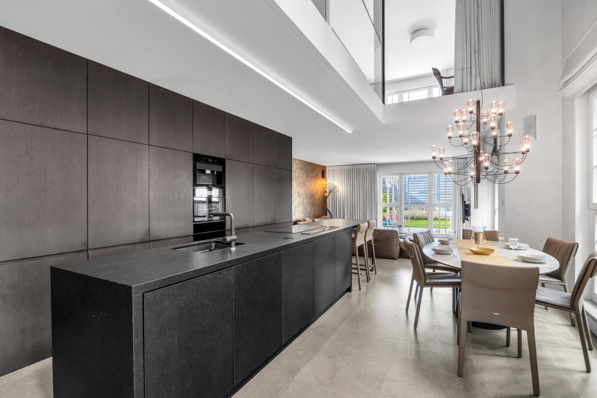 Apartament 134 m² w kameralnym, dwupoziomowym budynku z ogrodem 87 m² i antresolą o wysokości 5,5 m. Położony w cichej, drugiej linii zabudowy.