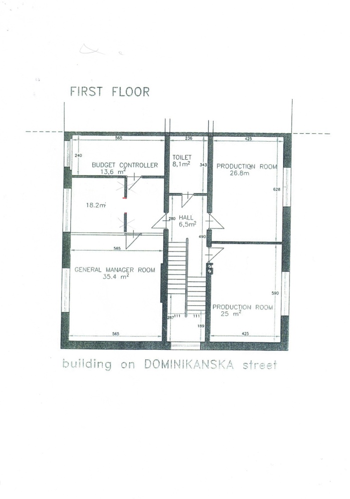 18 pokoi, serwerownia, 3 łazienki, duża kuchnia.