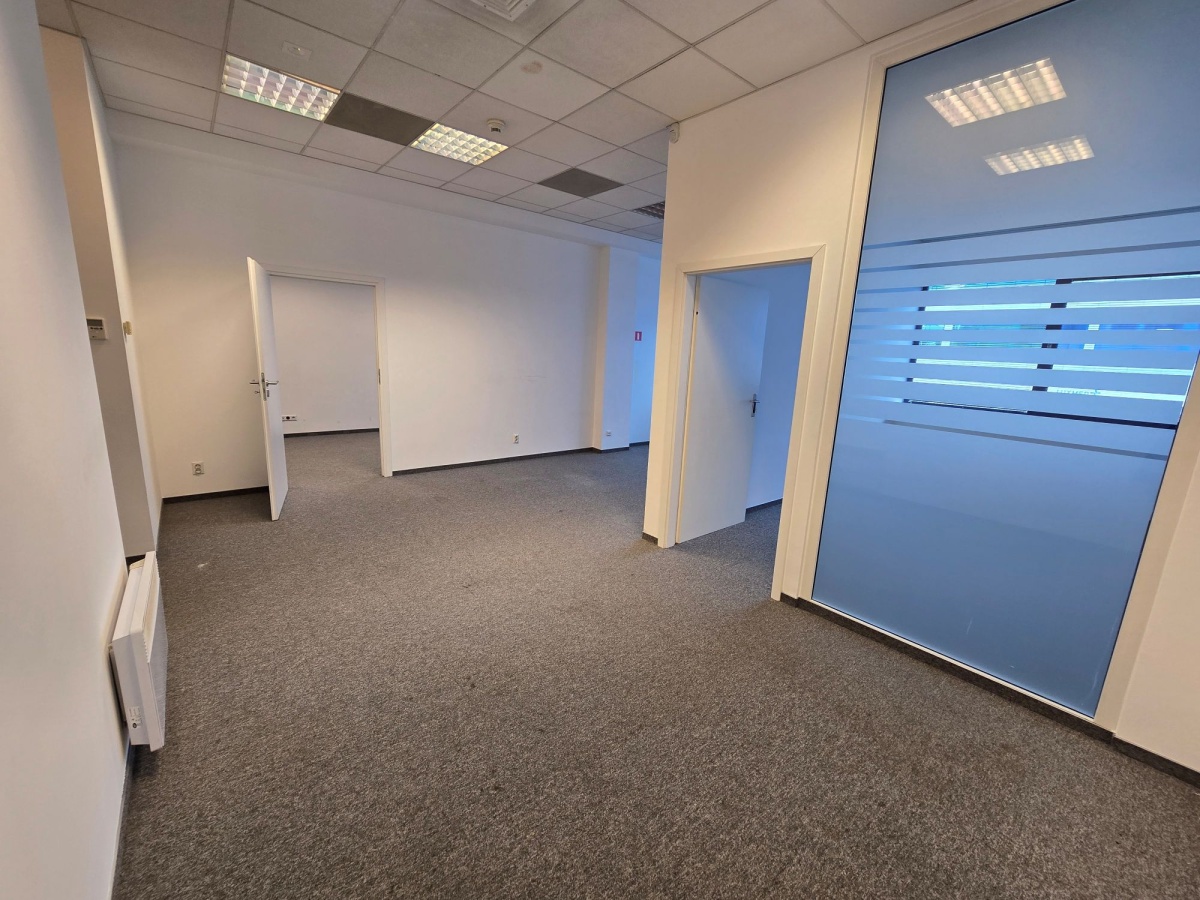 Do wynajęcia lokal biurowy o powierzchni 85,3 m2, zlokalizowany na I piętrze biurowca na ul. Wadowickiej 6. Lokal składa się z pięciu pomieszczeń i toalety.