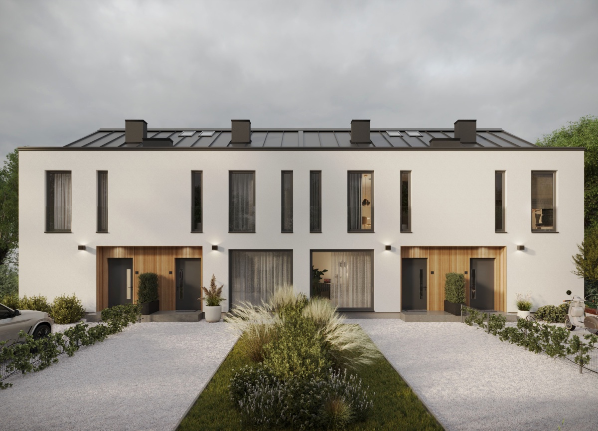 Zastosowaliśmy czystą formę jasnych elewacji przełamanych ciepłym odcieniem drewna. Połączenie funkcjonalności i estetyki było naszym priorytetem.