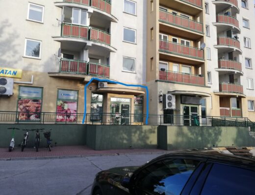 Lokal znajduje się na parterze apartamentowca w ciągu innych lokali usługowych i handlowych.