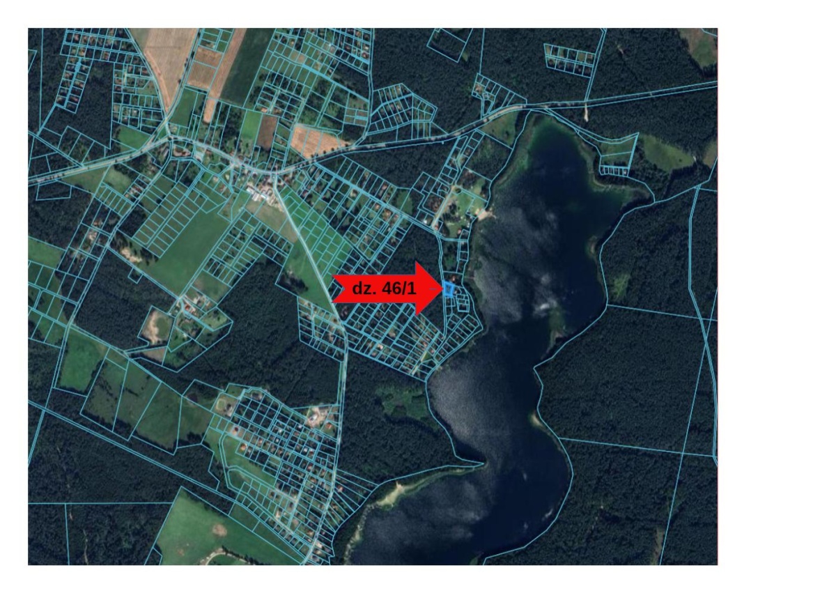 Działka 929m2 ok. 50m od jeziora, zagospodarowana, dużo roślin (jabłonie, winogrona itp.) wielki kasztan przy wjeździe.