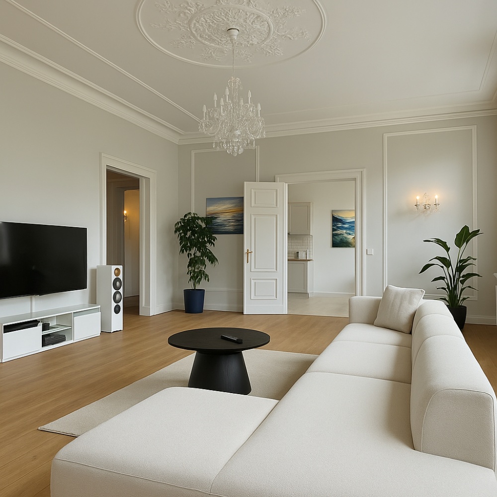 Na 5 pokoi składają się jasne i wysokie wnętrza z dużymi nowymi oknami, które dają wiele możliwości aranżacyjnych – idealne zarówno dla rodziny, jak i pod prestiżowe biuro.