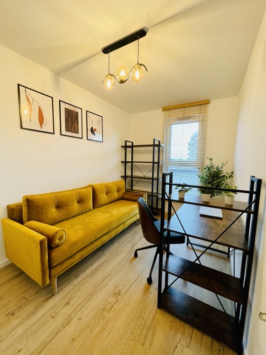 – drugiej sypialni/gabinetu (wygodna rozkładana sofa, duża szafa, regał, biurko),