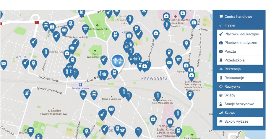 The apartment is located on Pod Fortem Street. It is a superb location in Krowodrza, only 20 minutes walk from the Main Square, with very good access to public transport. In the neighborhood there are bus and streetcar stops and Krakow Lobzów train station. In the vicinity there is also a full retail and service infrastructure, including Biedronka, bakery, gym, restaurants, schools, kindergartens, parks, etc.