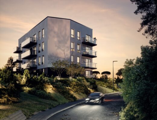 Budynek znajduje się na zamkniętym osiedlu przy lesie.