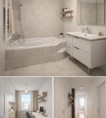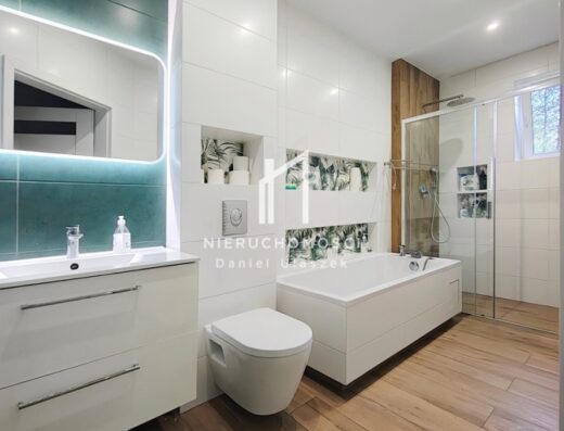 – – – – – pełna łazienka, a w niej: prysznic, WC, umywalka, pralka