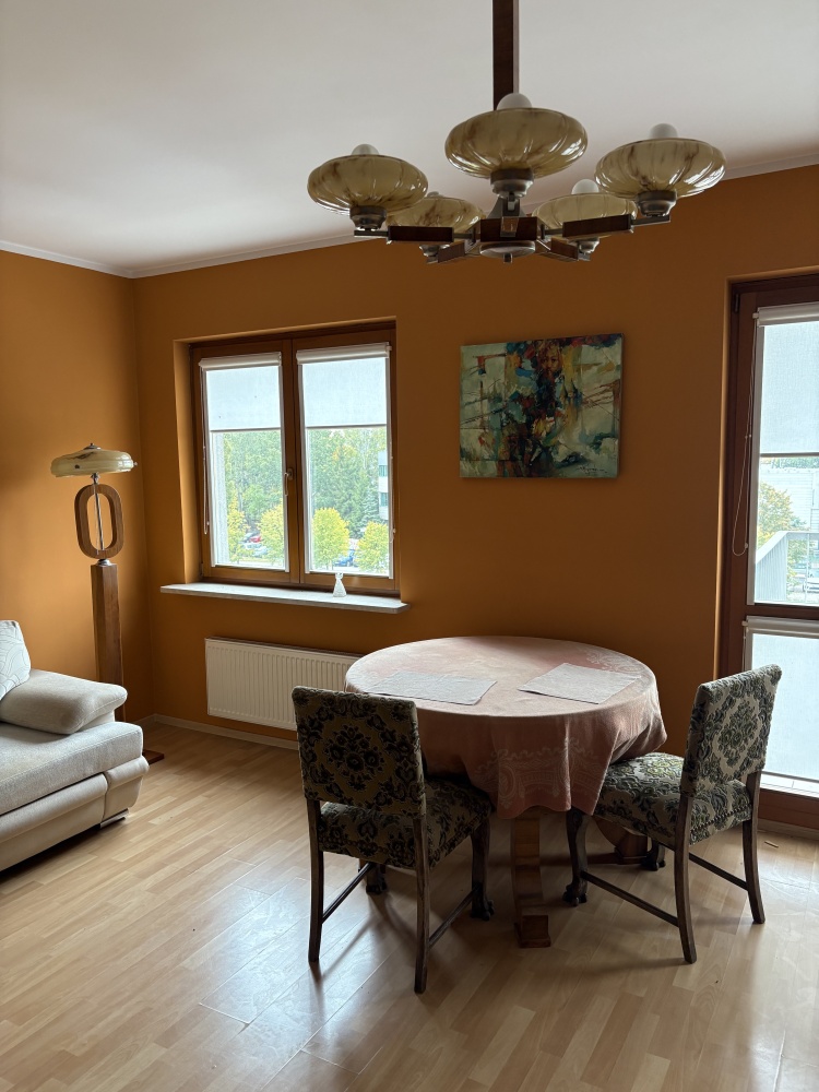 Mieszkanie ładne, jasne, ciche składa się z salonu, bocznego aneksu kuchennego, korytarza, łazienki i sypialni.