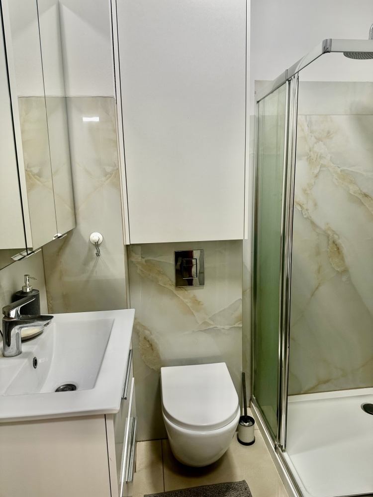 Mieszkanie własnościowe z księgą wieczystą 51,07 metrowe, położone jest na czwartym piętrze. Mimo, że znajduję się w sercu miasta jest ciche. Poza tym jest w nim klimatyzacja.