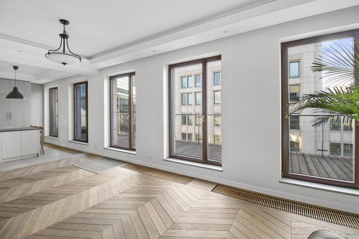 Nowoczesna nadbudowa dwóch pięter (cztery ekskluzywne mieszkania), umiejętnie wkomponowana w pięknie odrestaurowaną zabytkową kamienicę z 1895 roku | Wysublimowane wykończenia | Najmodniejsza lokalizacja na spokojnej i cichej Mokotowskiej | Przestronne wnętrza z wysokimi sufitami | Po generalnym wykończeniu | W pełni wykończone | Nowoczesna szklana winda. Taki apartament z tarasem pojawia się w sprzedaży raz na dekadę. Aktualnie jest to jedyny apartament z takim tarasem na sprzedaż na Mokotowskiej.