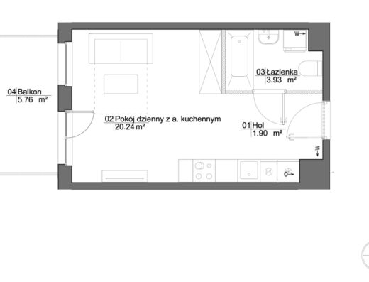 -aneksu kuchennego (płyta indukcyjna, okap, zlew, lodówka z zamrażarką, kuchenka mikrofalowa, szafki kuchenne – wszystko nowe),
