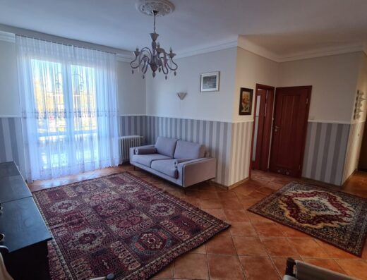 – umeblowany salon z dużym tarasem i wygodną rozkładaną sofą;