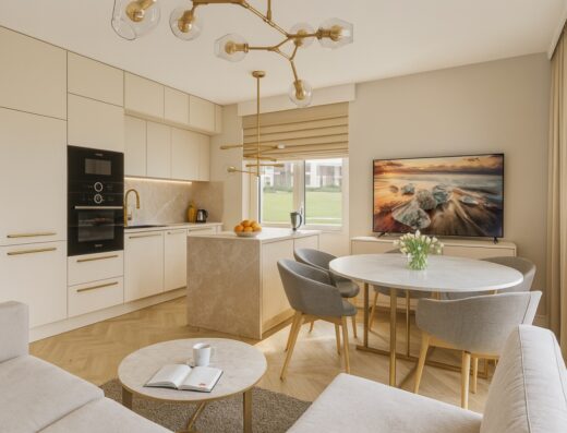 Mieszkanie wyróżnia się otwartą strefą dzienną, którą łączy przestronny przedpokój – idealne miejsce do wspólnego spędzania czasu.