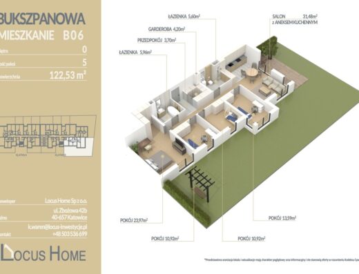 Spółka LOCUS HOME to deweloper który realizuje inwestycje mieszkaniowe na terenie Katowic od wielu lat. NOWA inwestycja na ulicy BUKSZPANOWEJ (obok nr 19) w Piotrowicach to nowoczesny apartamentowiec w doskonałej lokalizacji Katowic.
