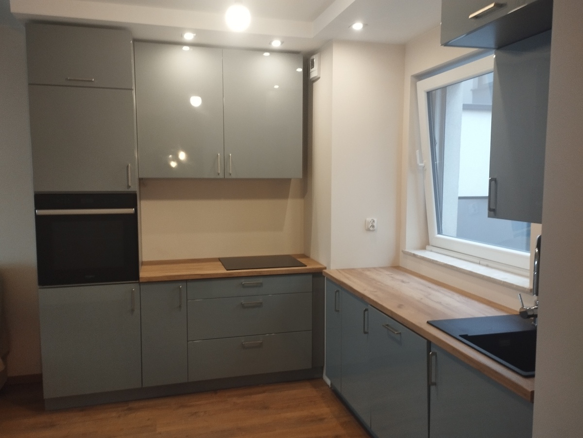Mieszkanie zostało wykończone z najwyższą dbałością o detal, a kuchnię wyposażono w wysokiej klasy sprzęt (lodówka, zmywarka, piekarnik, płyta indukcyjna) Sprzęt jest nowy. Łazienka posiada kabinę prysznicową i miejsce na pralkę.