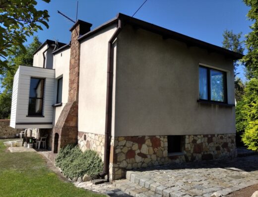 Dom położony jest w otoczeniu zieleni, w spokojnym i cichym miejscu, blisko lasu.