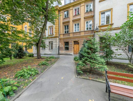Ochota, ul. Korotyńskiego 28 — zielona, spokojna okolica z wygodnym dojazdem do centrum i bliskością usług.