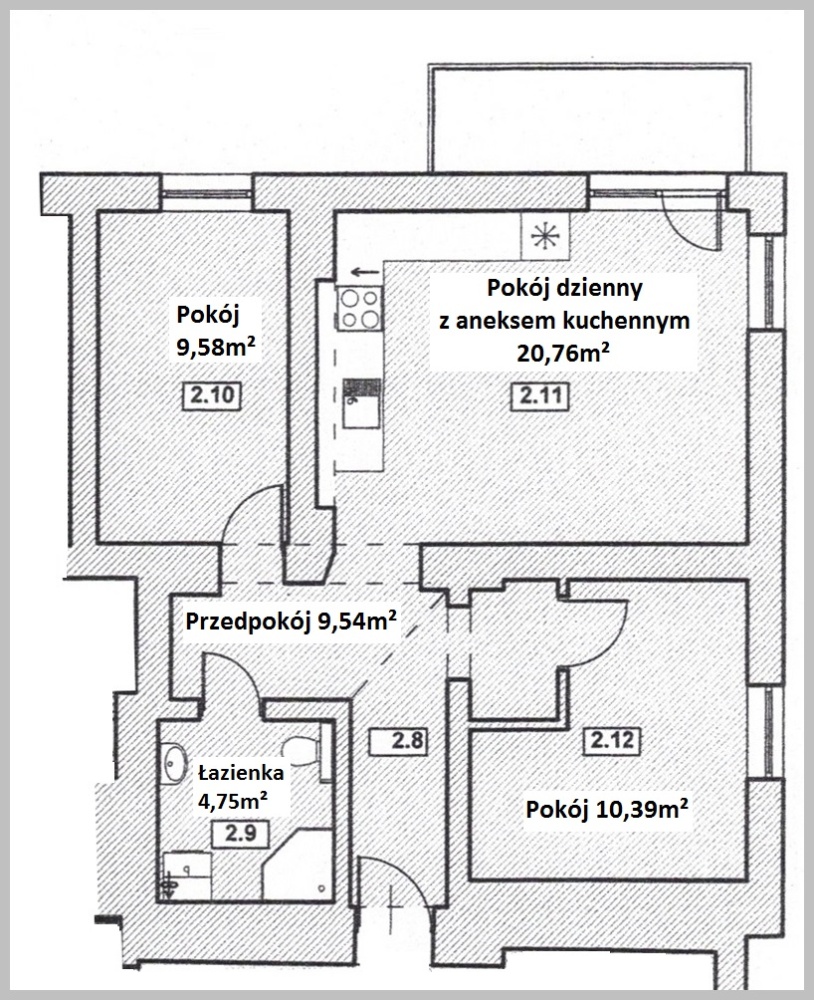 – Pokój 9,58 m²,